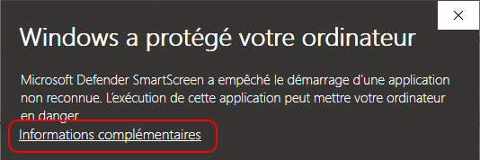 Smartscreen : message d'alerte et exécution